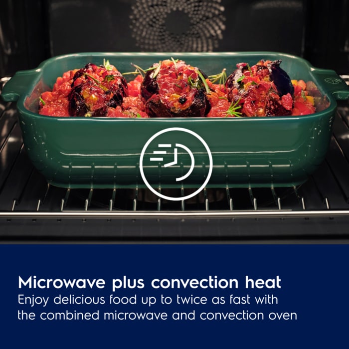 The 600 CombiQuick® CombiOven combines hot air circulation with microwaving for delicious results up to twice as fast. 2-in-1 functionality means you can grill, roast or bake – or use it as a microwave to defrost or reheat.