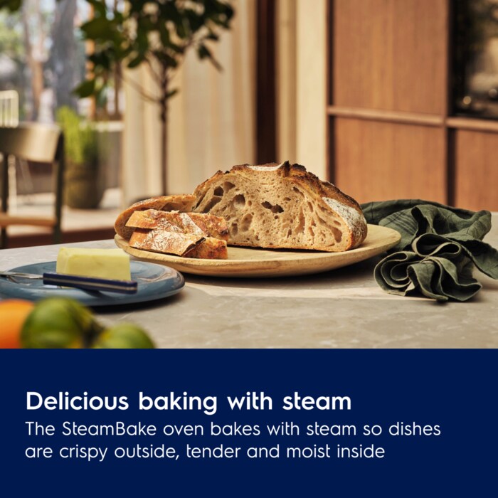 The SteamBake oven bakes with steam so dishes are crispy outside, tender and moist inside.