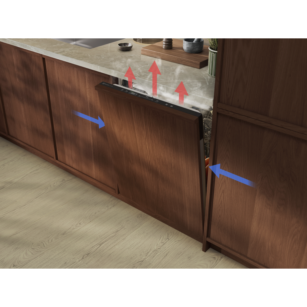 AirDry uses fresh air to finish drying the dishes. This makes the drying performance up to 3x better compared to a closed-door system. The door automatically opens towards the end of the cycle to let in fresh air.