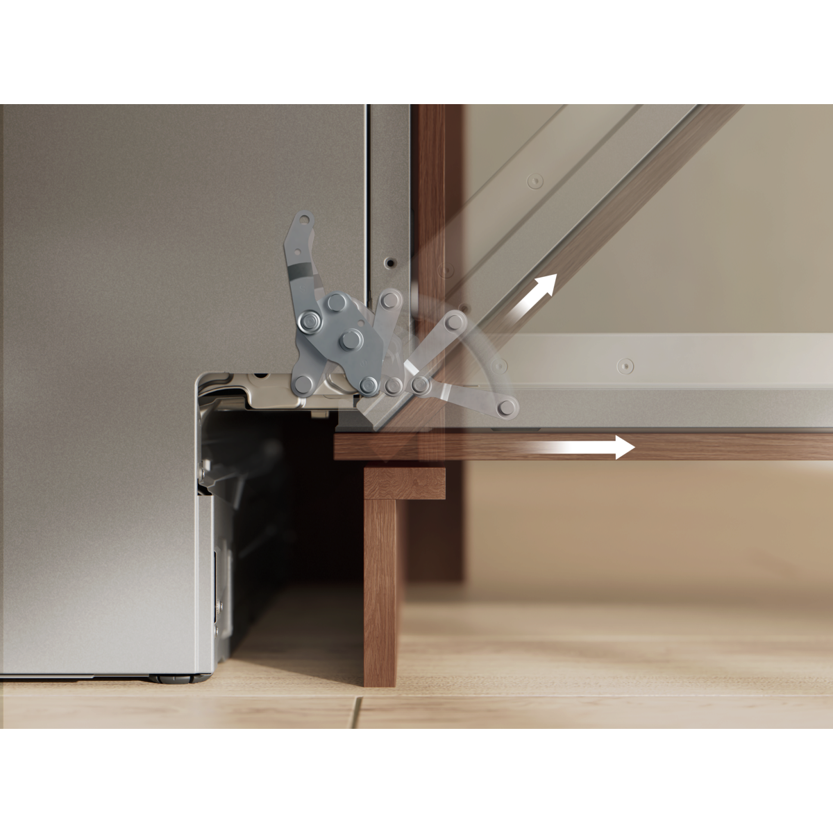 EasyFit Sliding Hinges enable the front panel to slide out of the way for seamless installation of integrated dishwashers – without cutting the plinth. The hinges accommodate all machine heights and fit any modern kitchen.