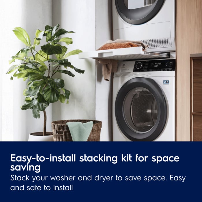 Stacking your washer and dryer is a great way to save space. The Stacking Kit gives you more options for storage, tasks or other purposes and makes your laundry room feel more spacious.